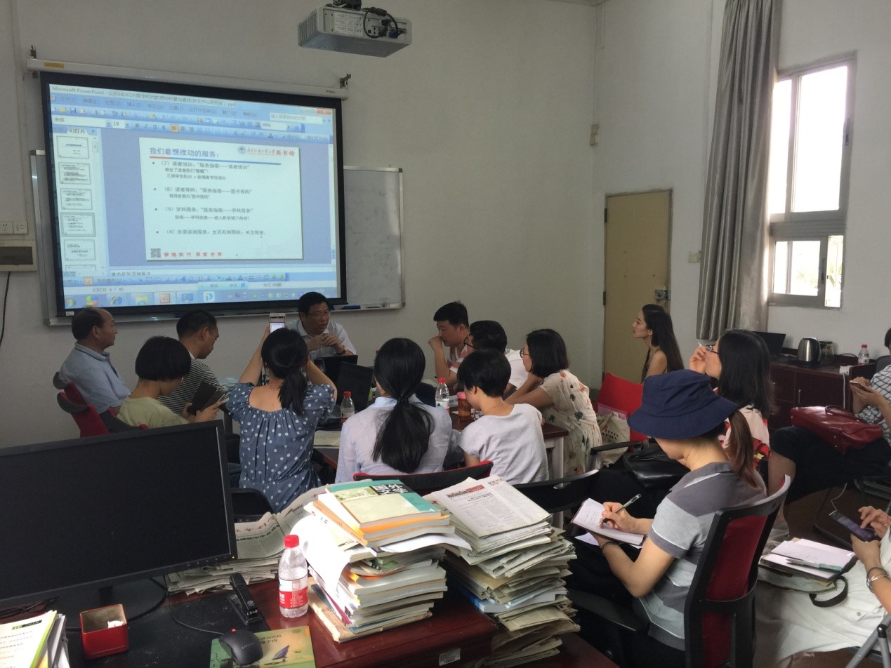 雷永立研究员首先系统介绍了我校图书馆的各项服务工作,为师生解答了相关的问题和疑惑。随后,雷老师详细介绍了图书馆各种形式、各个层面图书资料的储存情况及扩展方法,针对中心师生工作和学习中碰到的图书资料检索查找、获取等问题,雷老师现场示范,仔细展示了操作方法与操作流程。尤其针对最新的图书资料系统,雷老师充分结合日常科研和学习实践,不仅演示了操作流程,还分享了很多个人的便利体验和实用心得,令在座师生受益匪浅。