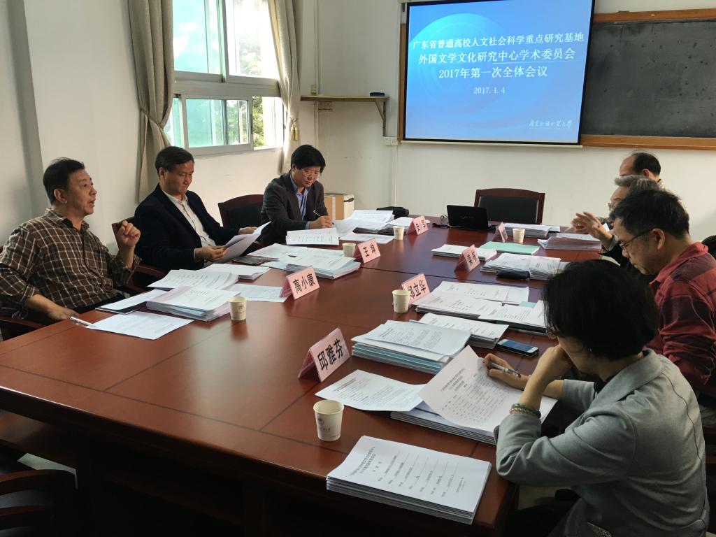 此次中心学术委员会全体会议共有两项议程:一是中心主任张进向学术委员会通报基地2016年度工作总结和2017年度工作计划,各位委员针对上述两份材料展开讨论,并提出了可行性建议。二是学术委员会对中心2014、2015年创新研究项目的结项材料以及2016年度创新研究项目申报材料进行了审议,同意 “中西方风体学大端问题趋通研究”和“比较文学专题研究:诗学理论与翻译”等两项中心标志性成果培植课题以及 “接受、熔铸与创新——王国维文学思想中的外国因素研究”、“村上春树文学在中国的传播”和“基于案例教学法的‘跨文化交际’课程设计” 等三项中心青年创新人才培植课题结项。同时批准“人文学前沿导向问题研究”等9个项目为“广东外语外贸大学外国文学文化研究中心2016年度标志性成果培植课题”,批准“特拉维夫学派诗学框架建构可行性研究”等10个项目为“广东外语外贸大学外国文学文化研究中心2016年度青年创新人才培植课题”,并为进一步充实和丰富研究内容提出了许多宝贵意见及可行性建议。
