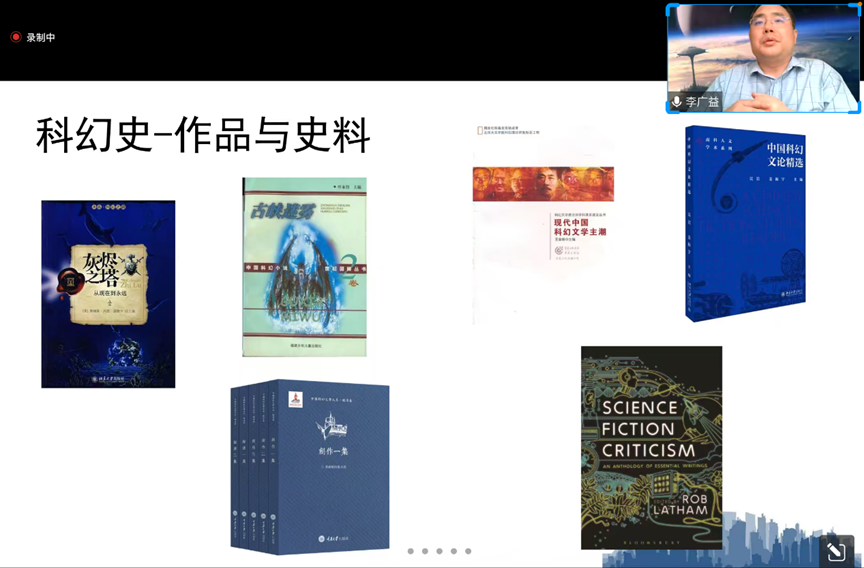 接着,李广益教授将科幻文学置于世界文学的大背景之下进行探讨,认为我们在面对“百年未有之大变局”时应与时俱进,积极关注科幻在世界范围内的结构性变化;同时也需要注意,各国文学的交融、渗透也会给科幻注入新的活力。随后,李教授也讲解了数字人文(Digital Humanities)与(Techno-Humanities)等重要概念,向听众介绍了目前科幻文学批评的新思路,例如用科技手段来分析和处理科幻文本。同时,李教授还分享了他对科幻文学发展新动向的观察,例如科幻文学与主流文学相向而行、中国网络科幻蓬勃发展等热点。